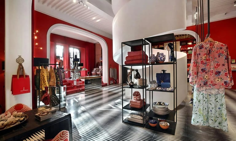 Aménagements sur mesure pour boutiques de luxe à Marrakech, créant une atmosphère chaleureuse et accueillante.